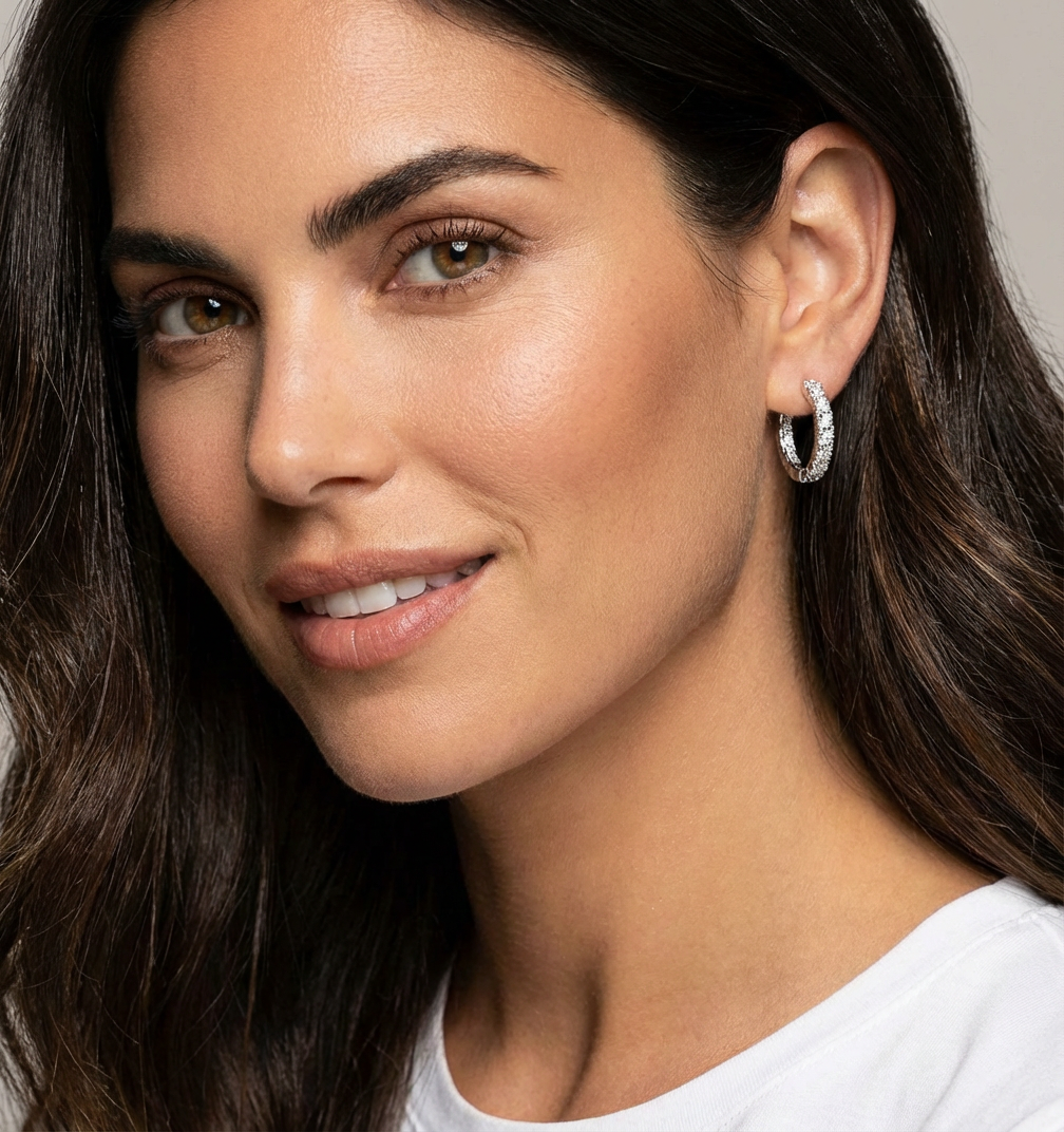 Timeless brilliance meets modern craftsmanship. These pave set V Diamond earrings are designed to catch the light from every angle, creating an elegant sparkle that elevates any look - from everyday elegance to special occasion.